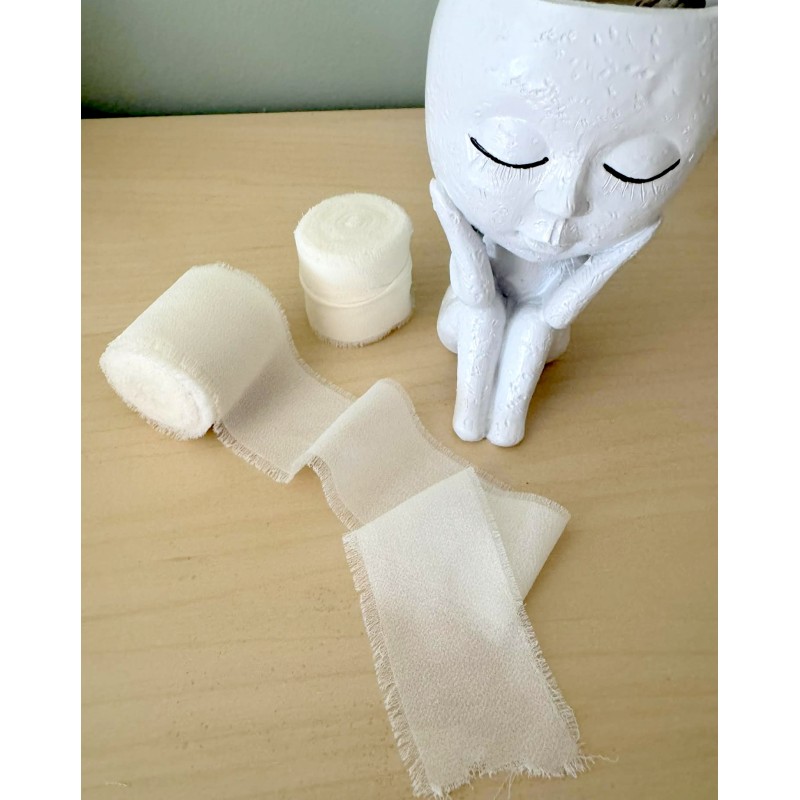 Ruban en Mousseline de Soie effiloché _ Ivoire