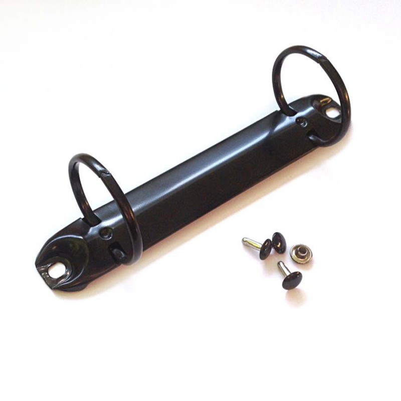 Mécanisme de classeur à anneaux en métal couleur noir, parfait pour créer vos albums scrap ou mixed media.